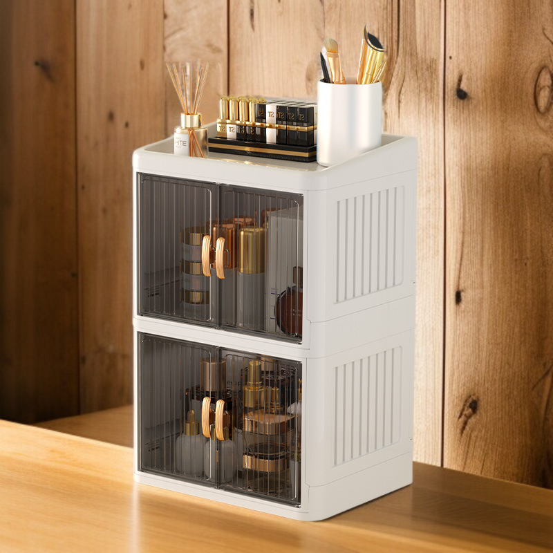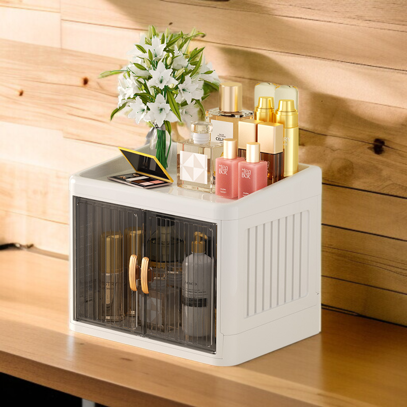 가정용 멀티 화장품 수납함 접이식 더블 도어 수납함 문구 스킨케어 멀티 수납함